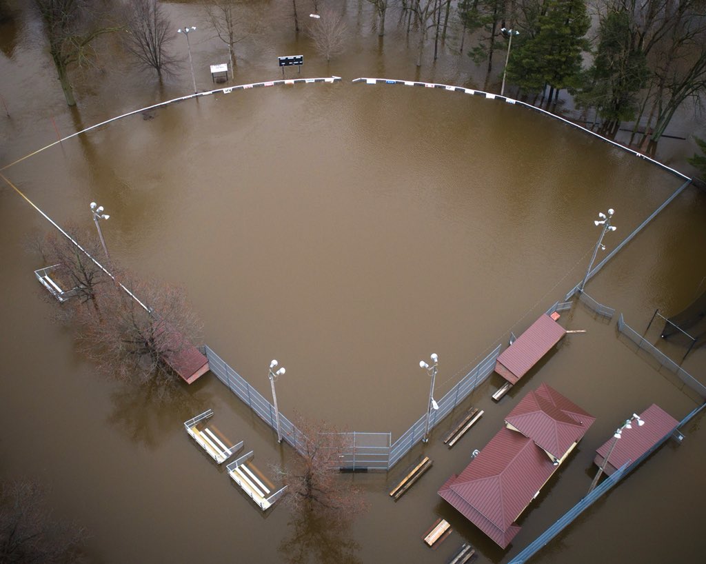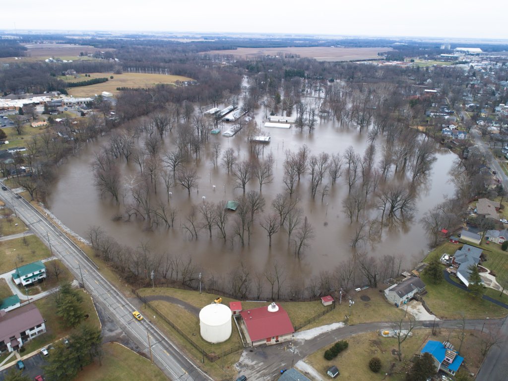The above simulated radar depiction is what I would typically see during my 30+ career as a meteorologist from late March into April…not in February. This is an example of some of the flooding taking place today looking at “real time” radar: