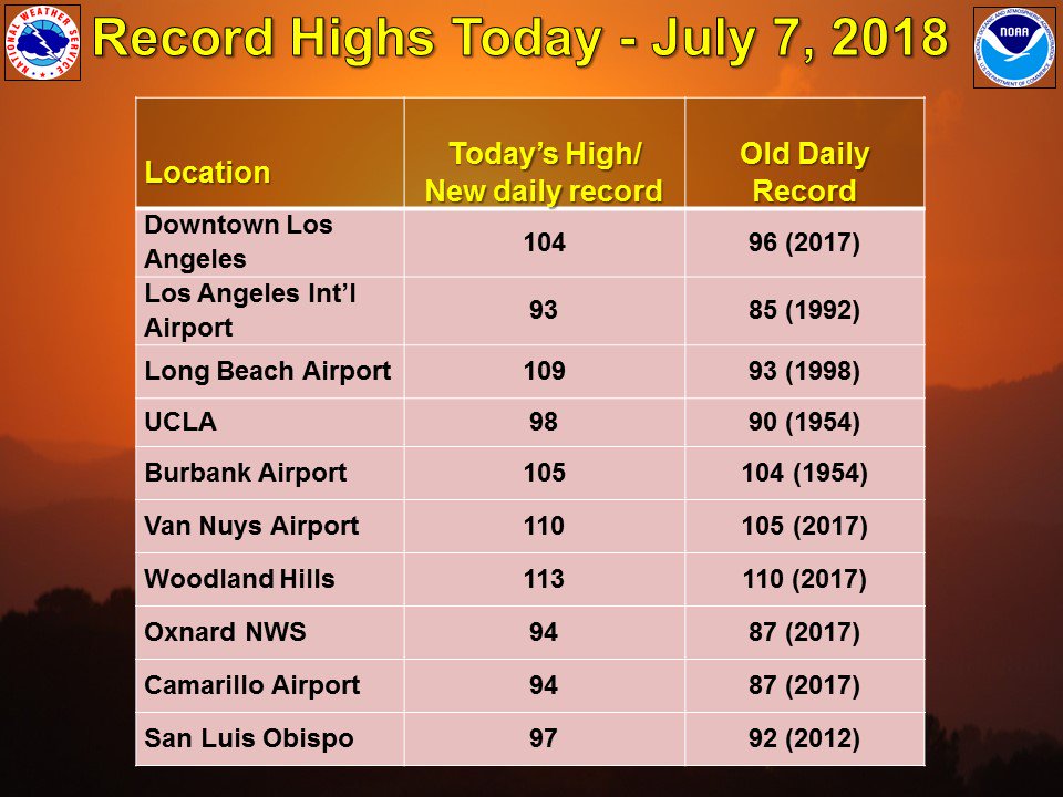 Setting new highs for the date (‘daily’) is not exceptional, but beating the old one by 10°C (18F, Van Nuys) is.