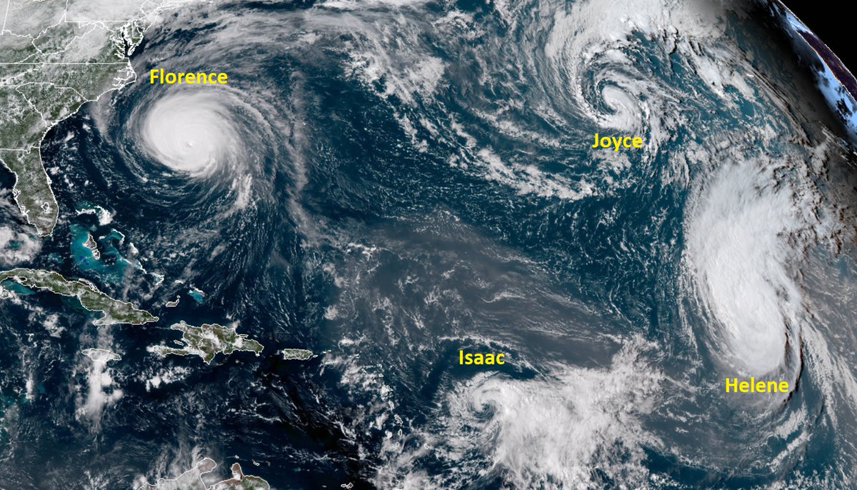 From Tuesday afternoon  through the overnight hours we had quite the model shift with just about all guidance stalling Florence around the southern North Carolina coast as a CAT 3/4,  then moving the system southwest towards Charleston weakening the thing, thankfully, along the track. I’d like all reading to think how unusual a scenario this would be for mid September if it verified. The upper ridge north and west of Florence resembles one typically seen from July into August, not now. Hurricanes moving towards the U.S. in Florence’s current position usually recurve away from the U.S. in September because of early fall systems moving through America. If any organized tropical system manages to make it towards the Carolinas cooler sea surface temperatures north of the deep tropics prevent a major hurricane from making landfall. This season’s SSTs are extra warm. All of these factors point to Florence being influenced by anthropogenic global warming.