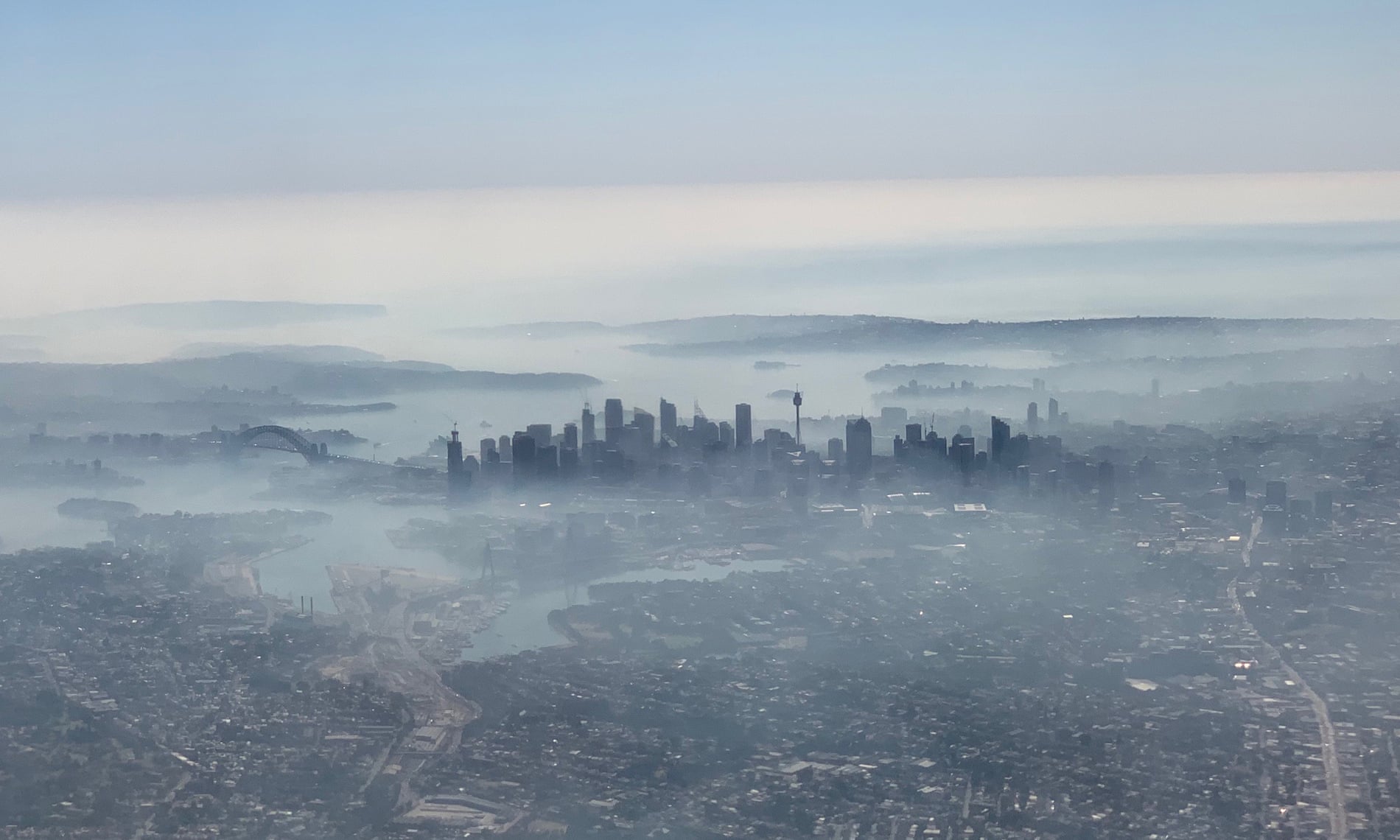 Smoke haze blanketing Sydney as bushfires burn in New South Wales, Australia. Photograph: Neil Bennett/AAP