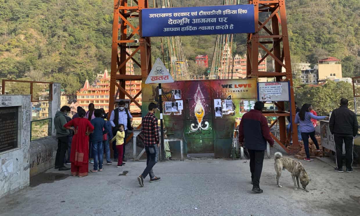A suspension bridge across the River Ganges is closed as a precautionary measure in Rishikesh, India, after a portion of Nanda Devi glacier broke off in the northern state of Uttarakhand. Photograph: Rishabh R Jain/AP