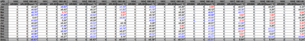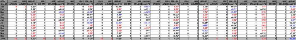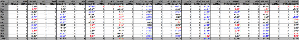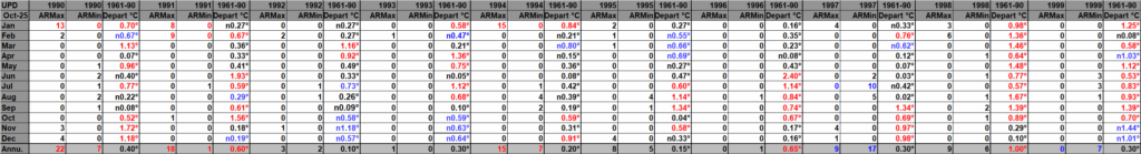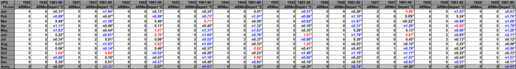 For a station to be considered for any parameter, it must have a minimum of 30 years of data with more than 182 days complete each year. This is effectively a “30-year record of service” requirement, but allows for inclusion of some stations which routinely shut down during certain seasons. Small station moves, such as a move from one property to an adjacent property, may occur within a station history. However, larger moves, such as a station moving from downtown to the city airport, generally result in the commissioning of a new station identifier. This tool treats each of these histories as a different station. In this way, it does not “thread” the separate histories into one record for a city.