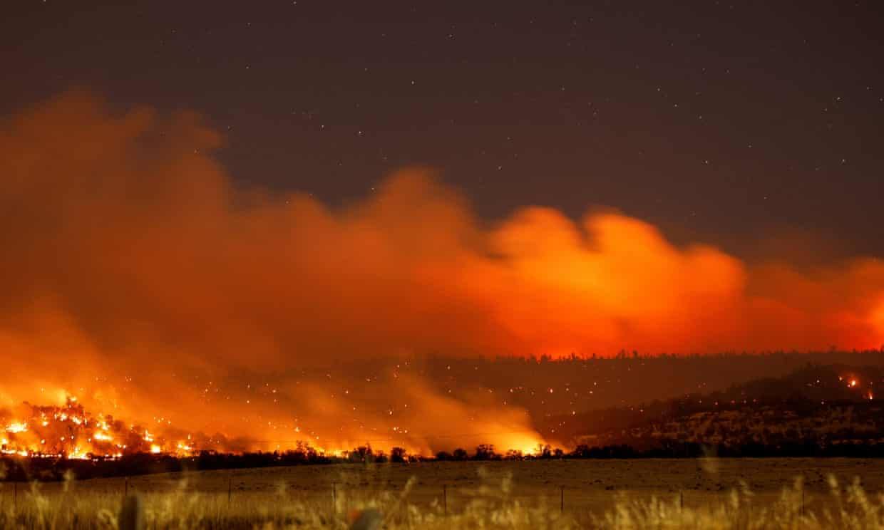 Smoke and flame rise from Park fire burning near Chico, California, in July 2024. Photograph: Fred Greaves/Reuters
