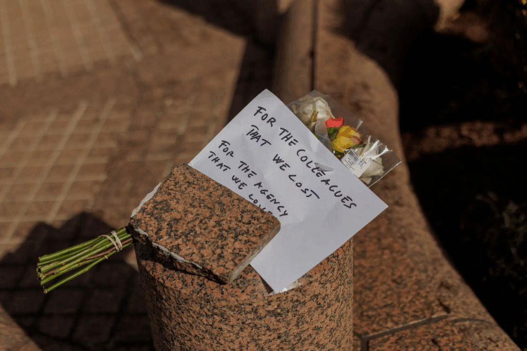 Flowers left outside the National Oceanic and Atmospheric Administration in Silver Spring, Md. Credit…Jason Andrew for The New York Times