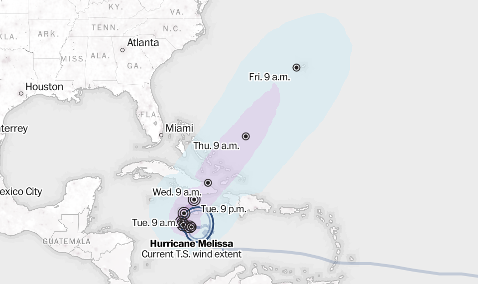 In addition to Jamaica, home to about 2.8 million people, dangerous rain-related impacts from Melissa will also continue to be felt in Haiti, where at least three people have died according to local reports, as well as the Dominican Republic. Then the strong storm will strike eastern Cuba late Tuesday into Wednesday as a major hurricane, followed by the southern Bahamas and Turks and Caicos Islands from Wednesday into Thursday.