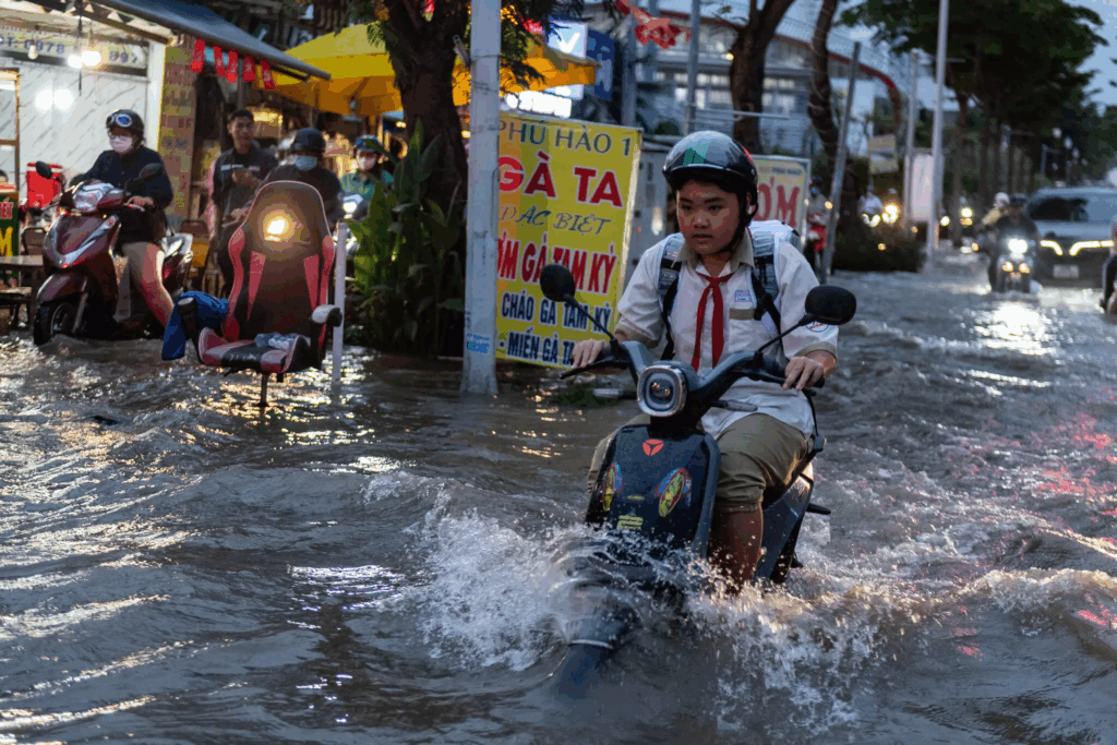 A motorbike powers through a flooded in Ho Chi Minh City street earlier this month. Credit…Thanh Hue/Getty Images