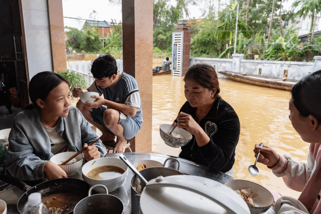 A family having lunch inside a flooded house in Trieu Son Trung, a village in Hue, Vietnam, early this month. Credit…Thanh Hue/Getty Images