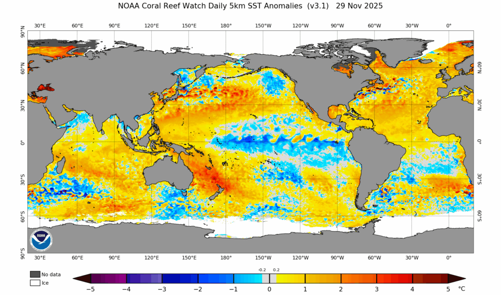 Next, we can get another clue looking at prior National Center for Environmental Information ranking and temperature record count data. For this I like to drag out my “Record Scoreboard” (updated through 11/29/2025):