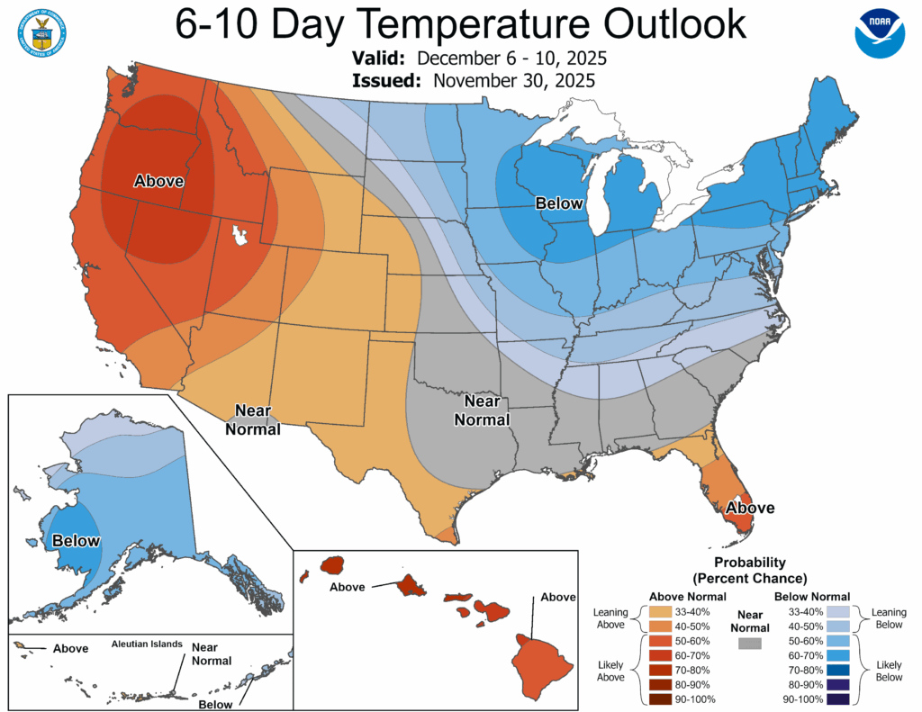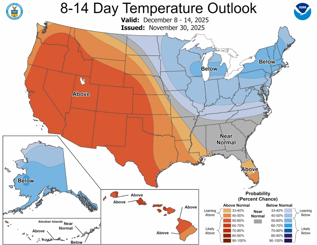 We do note that the first week or two of December will be cold across most of the eastern and central U.S. while it will be warmer than average in the West: