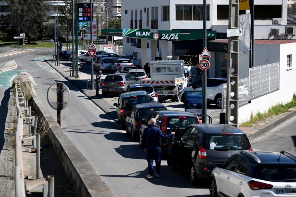 Queuing for gas in southern France. Earlier this week, E.U. officials introduced a proposal that would walk back an effective ban on the production of gas- and diesel-powered cars by 2035.Credit…Christophe Simon/Agence France-Presse — Getty Images