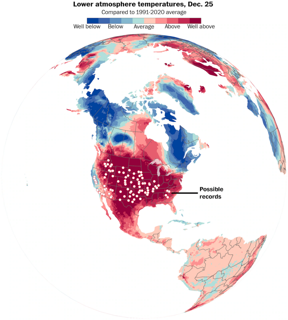 Today according to Washington Post statisticians, it looks like Christmas 2025 will be the warmest Christmas on record for the lower 48 states. Not only that, but a whole week running from December 22nd through December 28th will be super warm. In my neck of the woods in Atlanta people will be in shorts during the afternoon as temperatures climb into the mid 70s from Christmas Eve through the weekend after Christmas, for example.