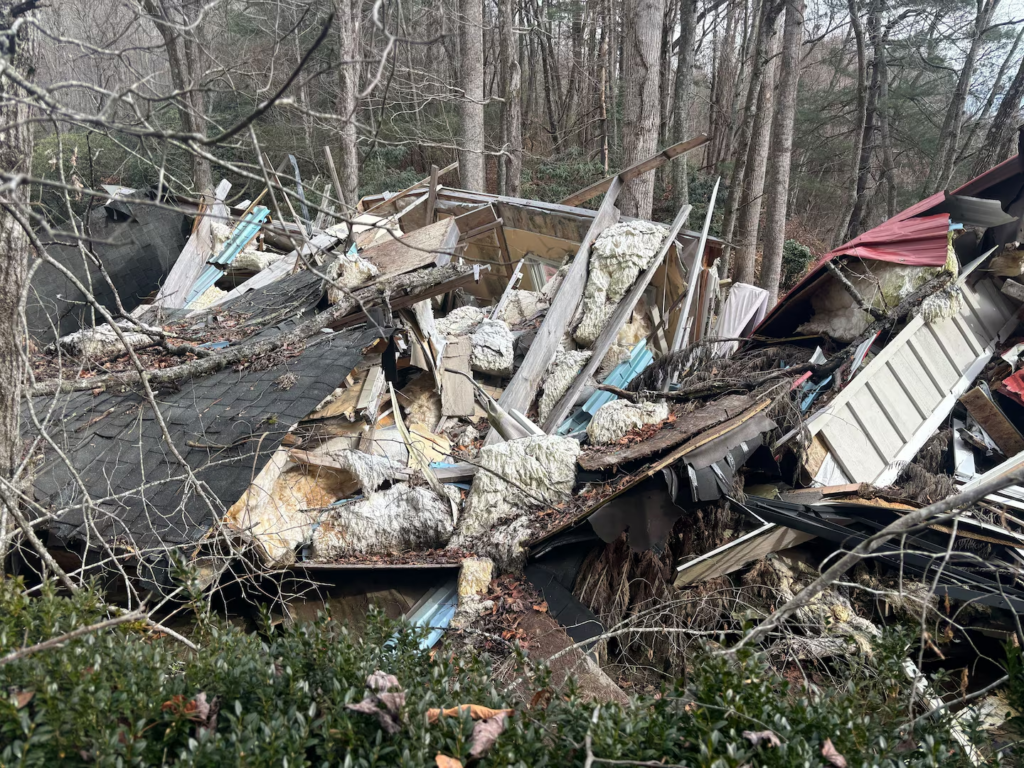 Steve and Carey Hayo’s home outside Hendersonville, North Carolina, was destroyed by a landslide during Hurricane Helene in September 2024. (Brady Dennis/The Washington Post)