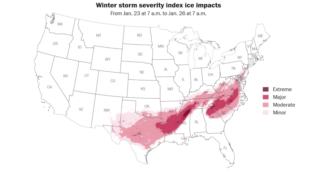 Here are some of the latest details on Winter Storm Fern from the Washington Post: