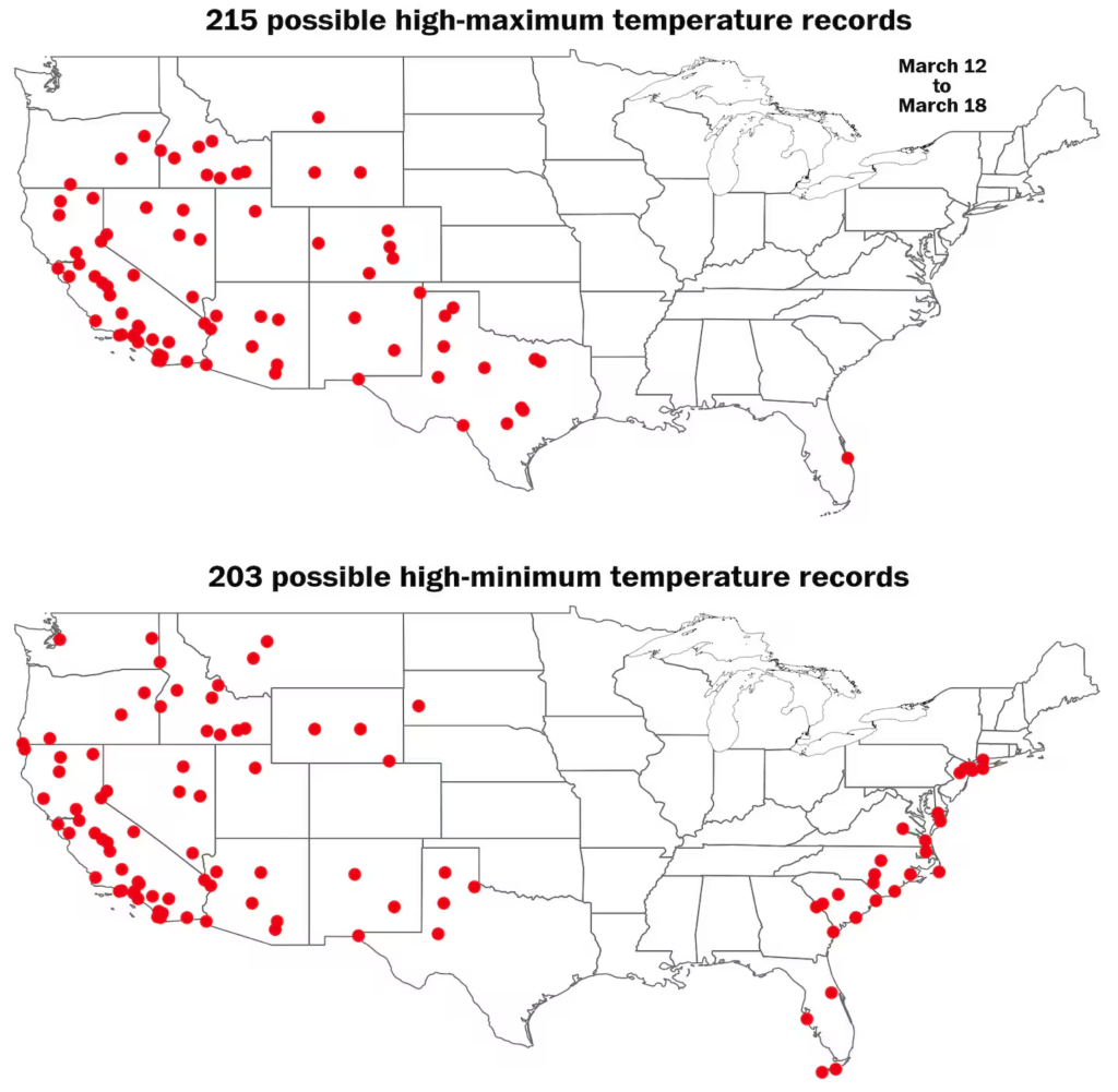 This follows the warmest start to March on record for the United States.