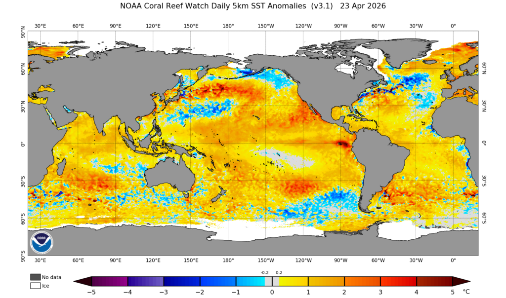 Where April ocean temperatures have been record or near-record high